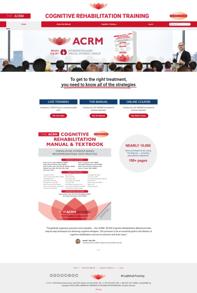 The ACRM Cognitive Rehabilitation Companion Site was built as a supplement to a widely used medical textbook. This project involved a complete build, including templates and an extensive number of subpages hidden depending on user profiles (instructor, student, public).
