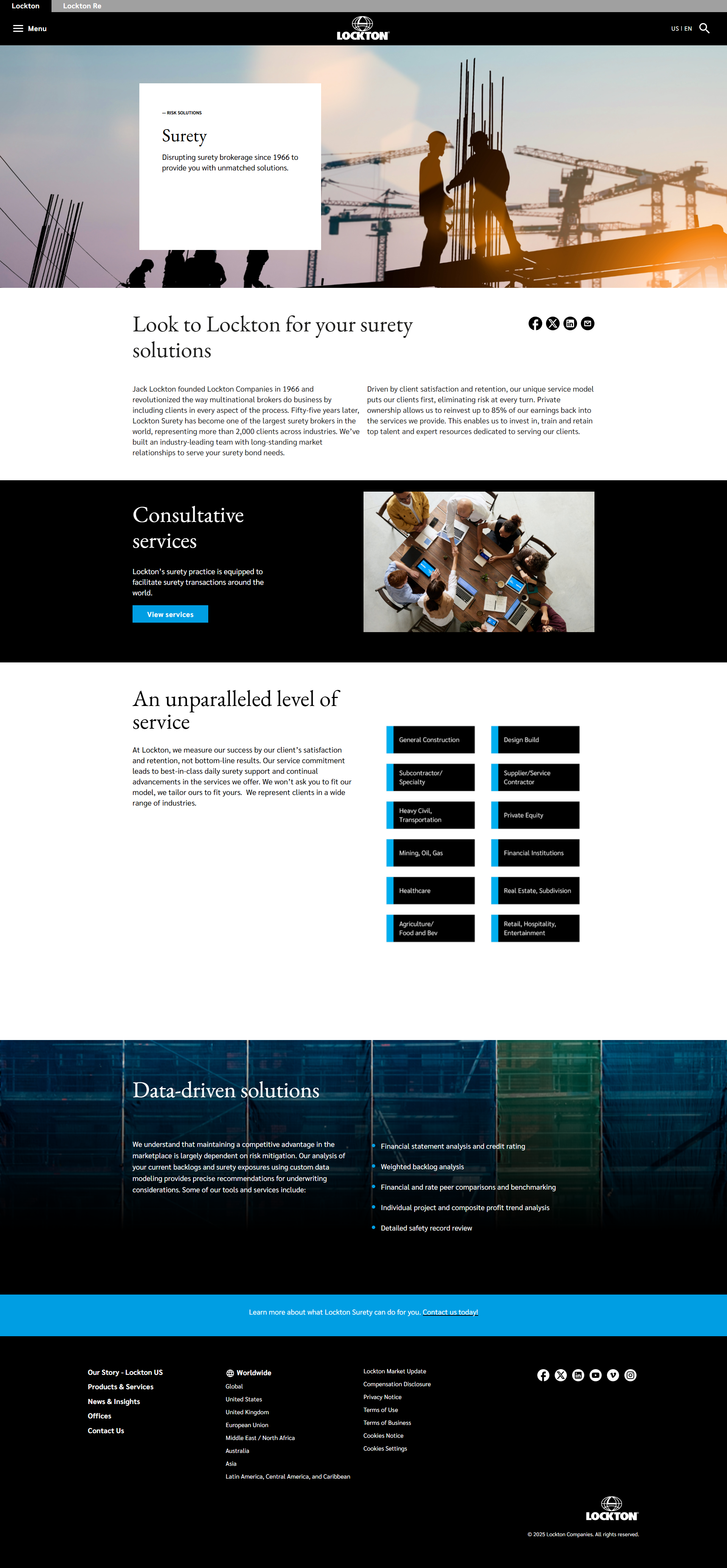 In 2021, Lockton transitioned their website to a new platform, including all assets and content. This large-scale project included transferring assets, designing pages, and moving content from the legacy site to the new platform on Contentful.
